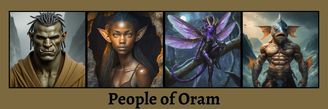 On Oram, creatures are divided into three main categories: Keathra, Umanid, and all the rest. While little is known about the Keathra, who have been nearly eliminated from the world, the Umanids are the “People of Oram.” They come in all shapes and sizes, but they share one special trait: they can all speak Oramische, the unique language of Oram. The other creatures are often simply referred to as monsters or animals, but they are just as varied and numerous as the creatures you find on Earth.